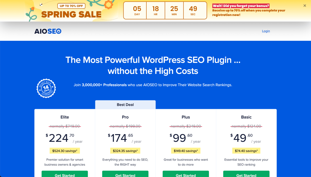 - Pengunduhan tanpa batas dan akses ke peningkatan ke All in One SEO Pack Pro selama Anda tetap berlangganan