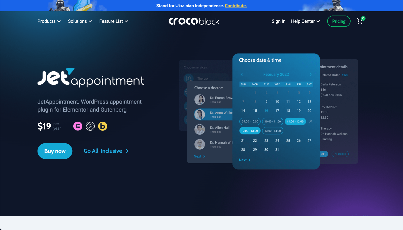 | Salespage & Demo | https://crocoblock.com/plugins/jetappointment/ |