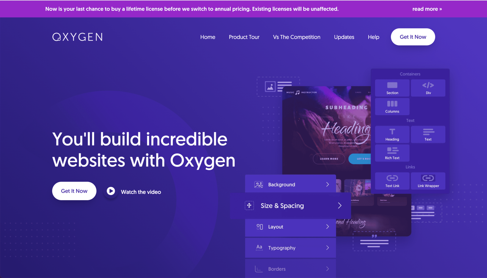 Oxygen Builder adalah plugin WordPress yang memungkinkan pengguna merancang dan menyesuaikan situs web mereka tanpa keahlian coding. Ini menawarkan kemampuan desain tingkat lanjut, templating, dan fungsionalitas data dinamis untuk header, footer, arsip, postingan blog, jenis postingan khusus, dan banyak lagi. Oxygen Builder serbaguna dan kompatibel dengan WordPress, memungkinkan pengguna mendesain semua jenis situs web dengan mudah. Ini adalah pilihan ideal bagi pengguna yang menginginkan kontrol penuh atas desain situs web mereka.