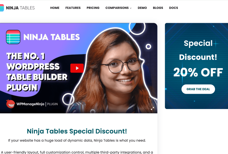 Ninja Tables Pro adalah plugin WordPress premium yang memungkinkan Anda membuat dan menyesuaikan tabel dengan mudah untuk tujuan apa pun. Ini adalah plugin tabel data tercepat dan paling beragam yang tersedia, dengan tata letak yang ramah pengguna dan pengaturan yang mudah ...